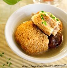 [原料] 鲜猴菇菌250克,猪排骨200克。香菇3个,精盐、酱油各适量。 (制法) 将鲜猴头
