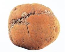 【孢体】:灰褐色或浅褐色,紧密,有弹性,用手撕之,内有灰褐色棉絮状的丝状物。触之则孢子呈尘土样飞扬,手捻有细腻感